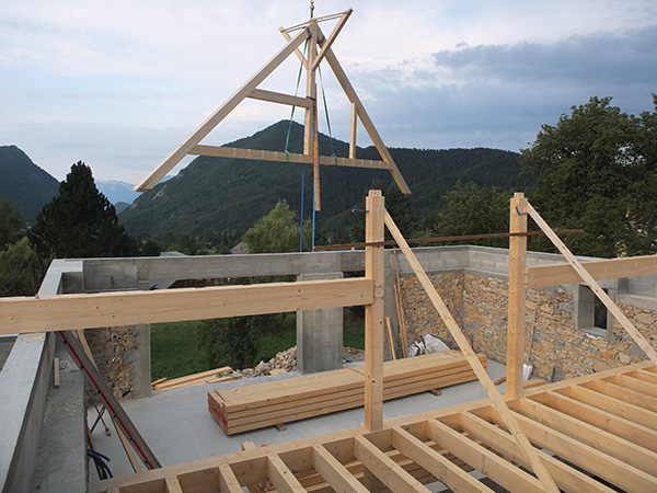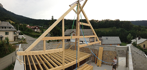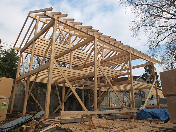 Réalisation d'une maison en poteaux poutre à Grenoble.