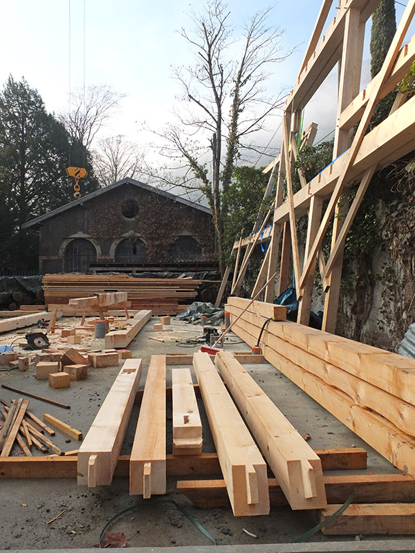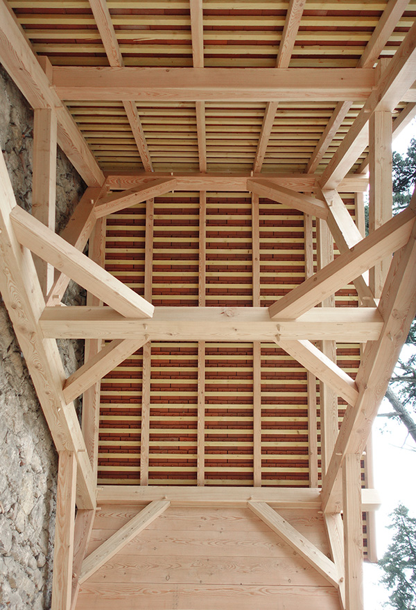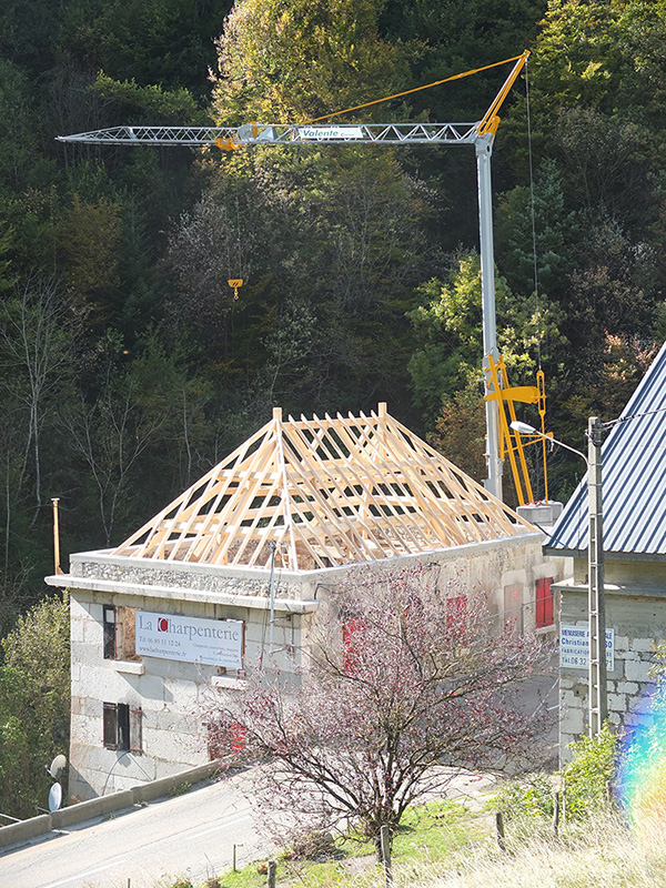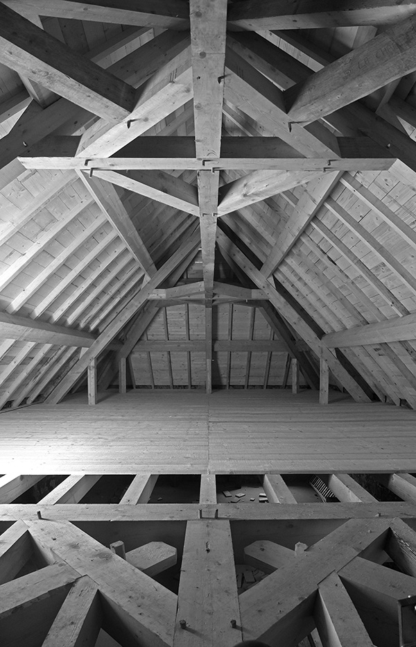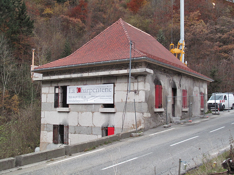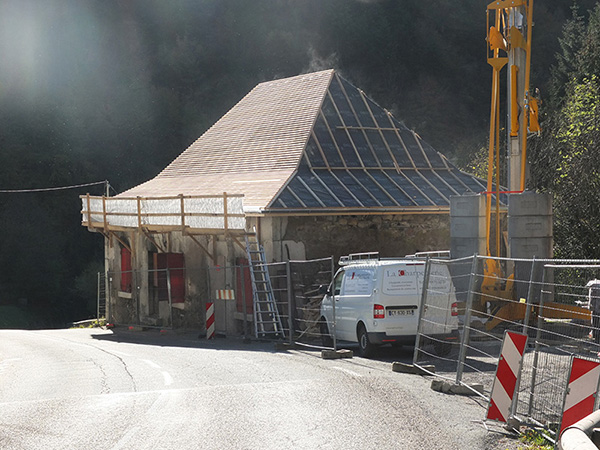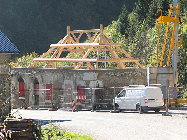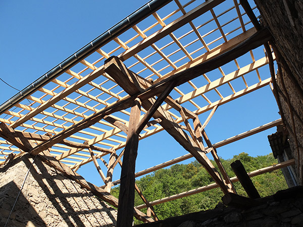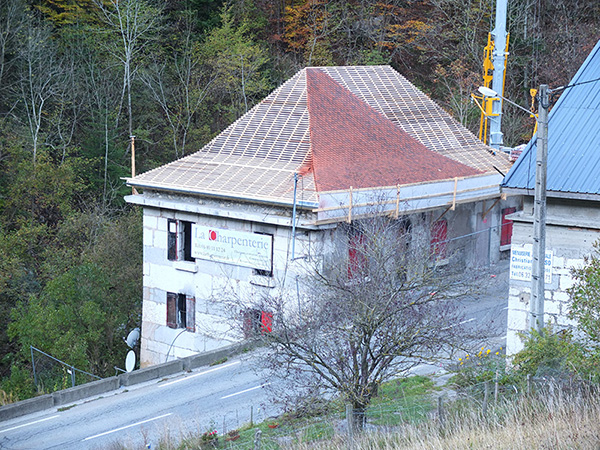 Charpente et couverture d'un ancien moulin au Sappey en Chartreuse.