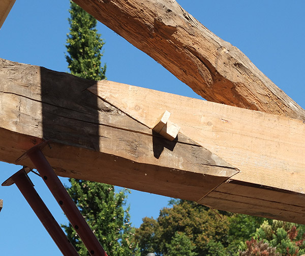 Réparation d'un entrait de ferme par un trait de jupiter.