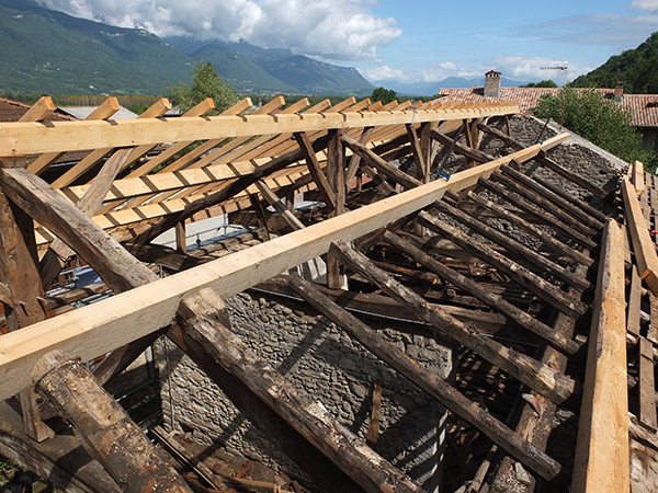 Restauration de la charpente et de la couverture d'une grange à Tencin.