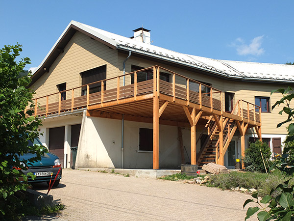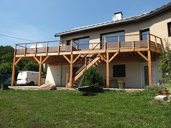 Construction d'une terrasse sur poteaux en mélèze au Sappey.