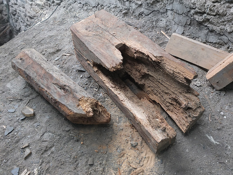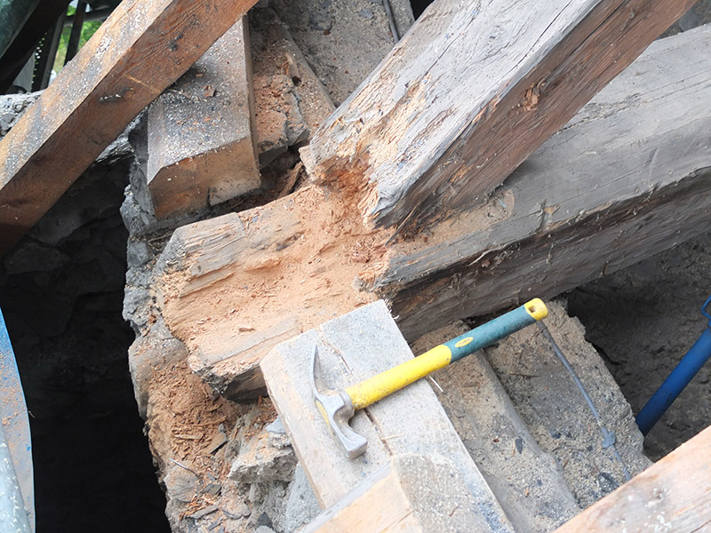 Notre Dame de la Vie. Chapelle sud après réparation. Notre Dame de la Vie. Chapelle sud après réparation. Notre Dame de la Vie. Poinçon de la chapelle ouest avant réstauration. Notre Dame de la Vie. Greffe du Poinçon. Notre Dame de la Vie. Pied de ferme de l'abside ouest avant restauration. Notre Dame de la Vie. Réparation du pied de ferme de l'abside ouest. Enture en trait de jupiter avec tenon sur l'entrait, renforcé par des fers en U. Notre Dame de la Vie. Réparation du pied de ferme de l'abside ouest. Enture en trait de jupiter avec tenon sur l'entrait, renforcé par des fers en U. Notre Dame de la Vie. Ancien poinçon de l'abside est. Notre Dame de la Vie. Abside est. Nouvelles têtes du poinçon et des arbalétriers. Notre Dame de la Vie. Abside est. Mise en place des greffes. Notre Dame de la Vie. Abside est. Enture du poinçon: assemblage double à mi-bois contrariés, avec tenons. Notre Dame de la Vie. Vue d'ensemble de l'abside est après réparation.